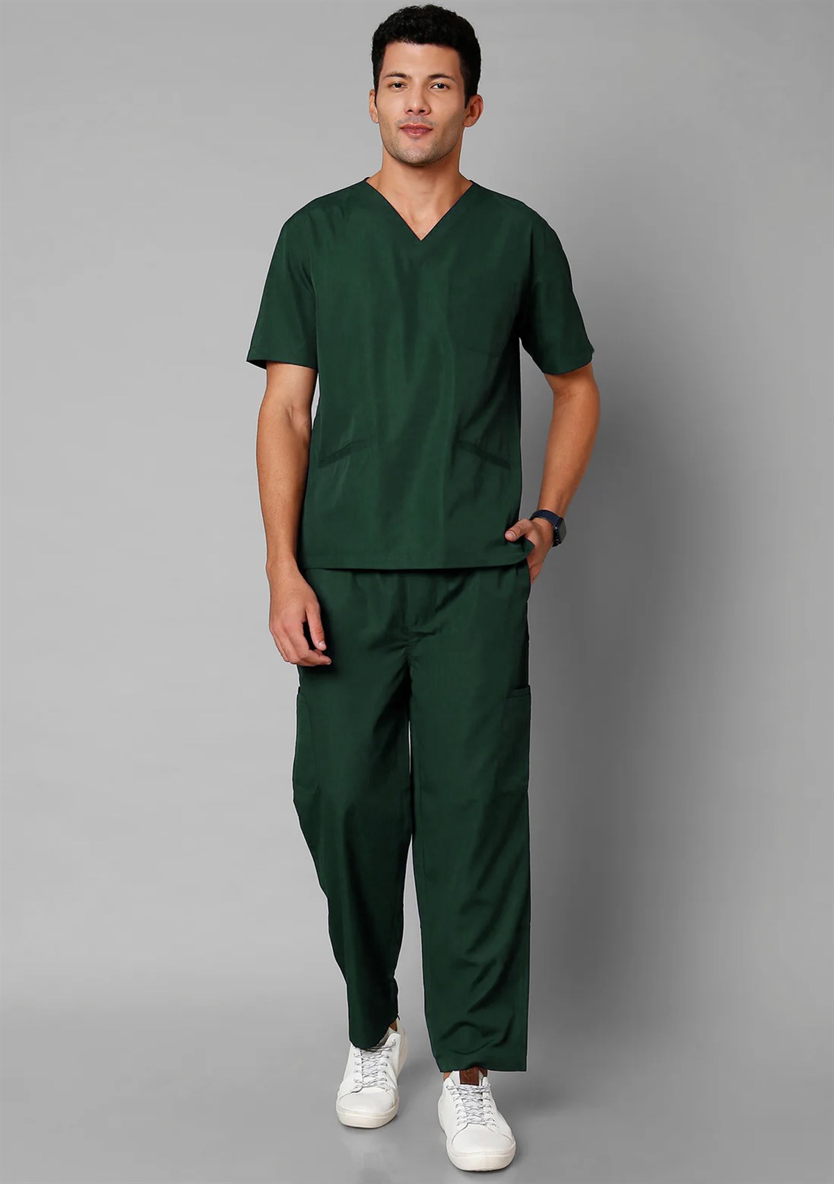 Medilap Scrubs medical scrubs cater to all your storage needs. Our scrubs for men include 3 spacious front pockets on the shirt and 4 functional pockets on the pants (2 on the sides and 2 on the knees) for storing medical gear, large enough to accommodate phones. All items in this set are odor-resistant and feature a grosgrain binding.