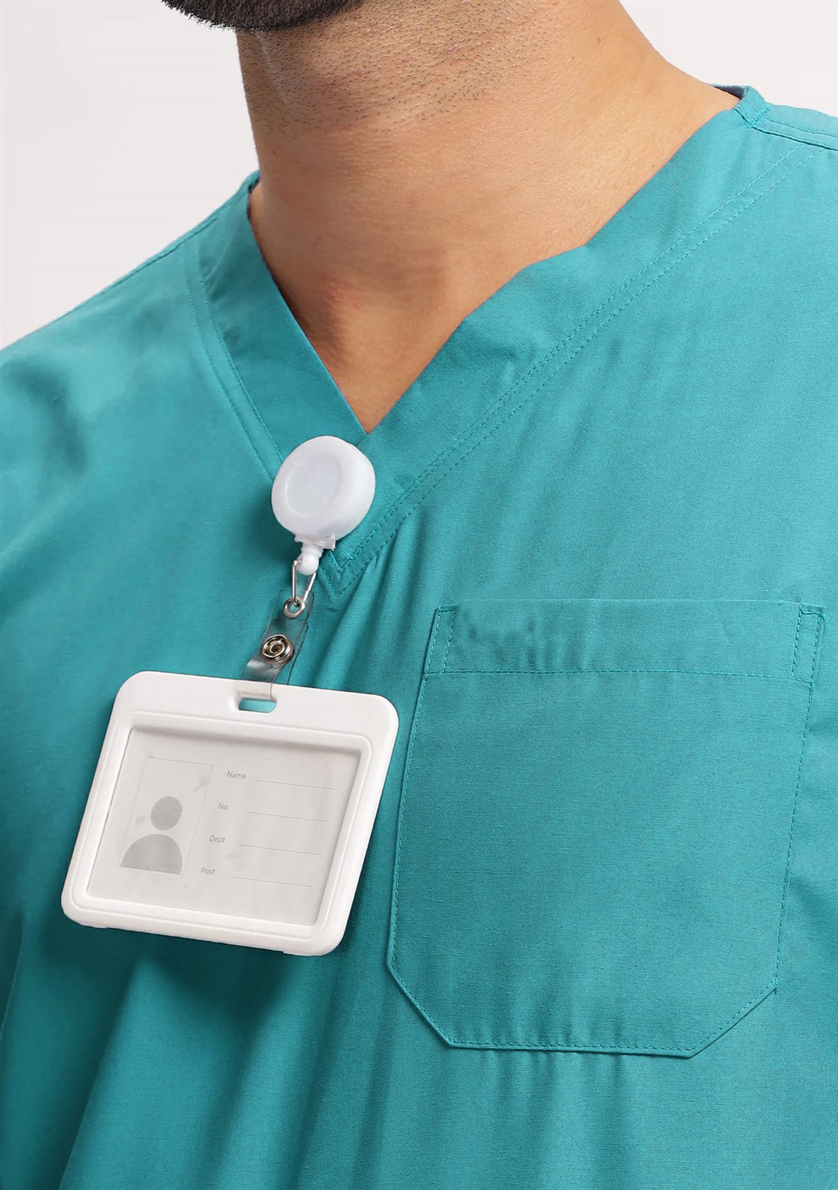 Medilap Scrubs medical scrubs cater to all your storage needs. Our scrubs for men include 3 spacious front pockets on the shirt and 4 functional pockets on the pants (2 on the sides and 2 on the knees) for storing medical gear, large enough to accommodate phones. All items in this set are odor-resistant and feature a grosgrain binding.